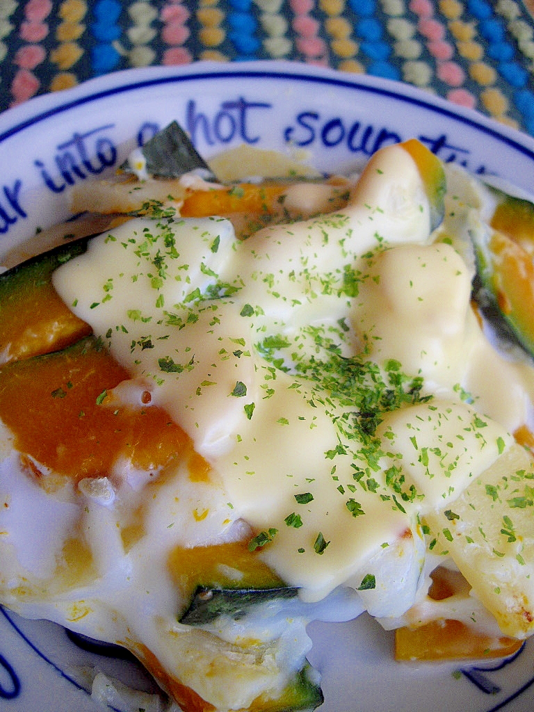 かぼちゃとじゃがいものシチュールーでグラタン風 レシピ 作り方 By Xxjujucookxx 楽天レシピ